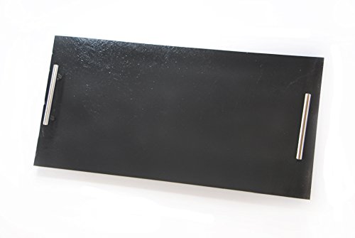 Studio : Bottles Wood Publisher : Bottles Wood Binding : Kitchen Product Description This stunning slate serving tray from BottlesWood is perfect for serving small plates or as home decor or vanity trays. Each tray is crafted out of top quality slate. Finished with solid stainless steel bar handles and rests on four silicon feet for both style and functionality. Easily write on the slate with chalk and wipe clean with a damp cloth. Perfect for labeling cheeses, appetizers and more. At BottlesWood we believe that your serveware should be just as unique as the cuisine you serve. Our products are handcrafted locally from reclaimed materials. We are proud to give back to the community by creating jobs for local craftsmen and supporting sustainability. 0