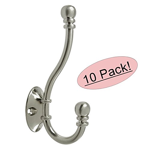Cosmas 36267SN Satin Nickel Heavy Duty Coat & Hat Hook - 10 Pack