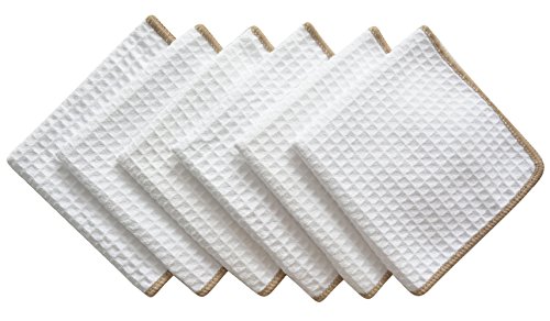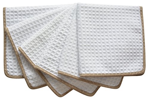 Sinland Thick Microfiber Waffle Weave Dish Cloths Dishcloths Washcloths Facial Cloths 6 pack White W/edge Brown