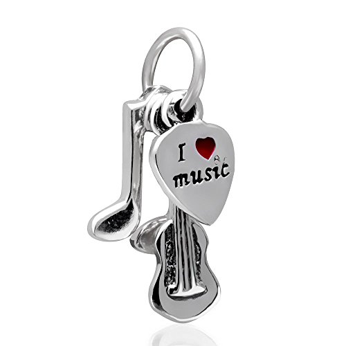 SoulBeads I Love Music Charm with Red Enamel Heart 925 Sterling Silver Bead for Charms Bracelet