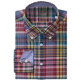 | (Van Laack)/Men/Shirts/DIRECT FROM USA/Van Laack Rarbi Cotton Shirt - Button Down, Long Sleeve (For Men) in Red/Blue Multi Plaid - Closeouts |