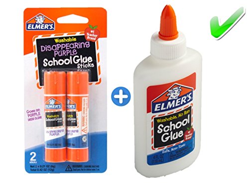 Elmer's bundle Washable Liquid School Glue, White, Dries Clear, 4 fl oz Plus Disappearing Purple Elmer's School Glue Stick, 6g, 2pk