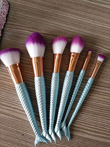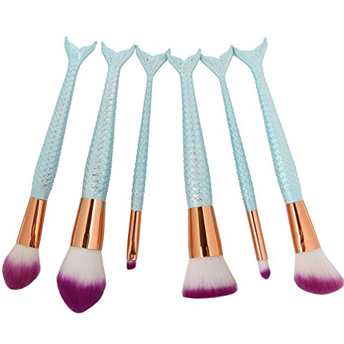 Coshine 6pcs/set Blue Mermaid Nylon Hair Makeup Brush Set, for Foundation, Eyeshadow, Blush, Cream, Concealer, Loose Powder.