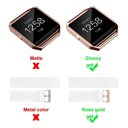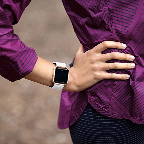 UMTELE Silicone Replacement Band with Rose Gold Frame for Fitbit Blaze Smart Fitness Watch, Small, White
