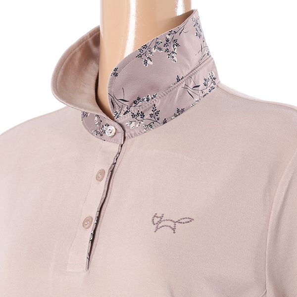 에리 뒤에 꽃 프린트가 되어있는 스타일로 스텐카라 긴팔 티셔츠.