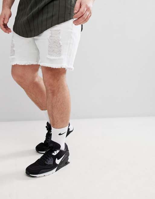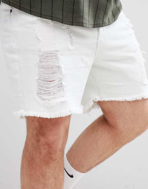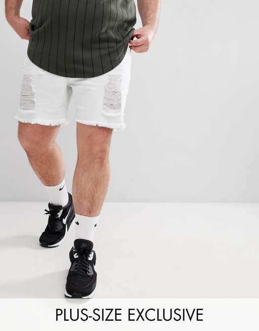 SikSilk PLUS Super Skinny Denim Shorts In White With Distressing Exclusive to ASOS