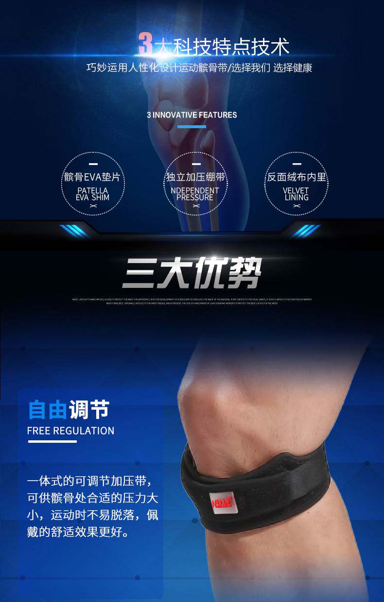 The inner elastic shock absorption gaskets can support and fixed on patella during movement.