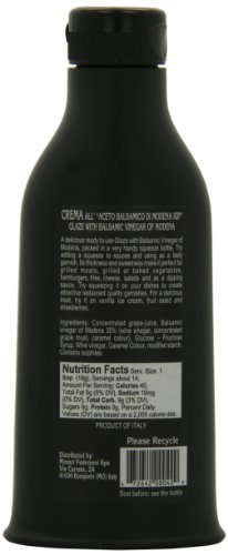 This thick and sweet glaze is ideal for adding to sauces, grilled meats and vegetables, ice cream, and fruit salad. Balsamic Glaze creates attractive, restaurant quality garnishes.