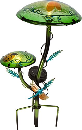 Trademark Innovations 12" Solar Mushroom Garden Stake with Dragonfly Design (Light Green)