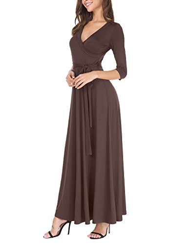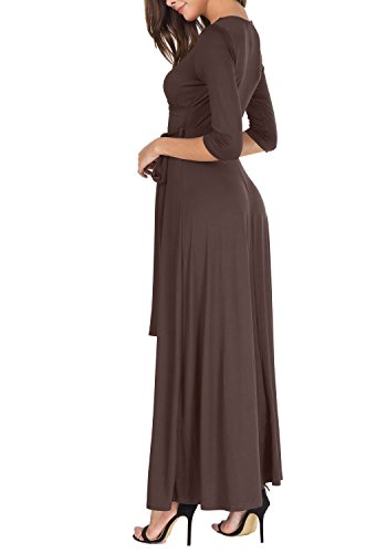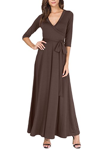 Levaca Womens 3/4 Sleeve Wasit Belt Loose Swing Casual Maxi Dress Coffee M