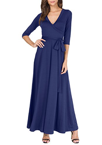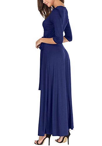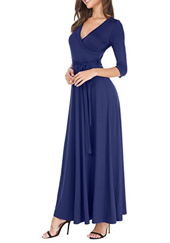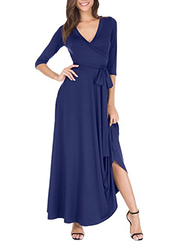 Womens Sexy V Neck Wasit Sash Swing Fit and Flare Party Wrap Dress Deep Blue L