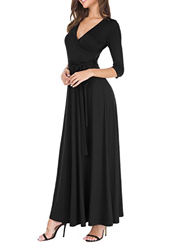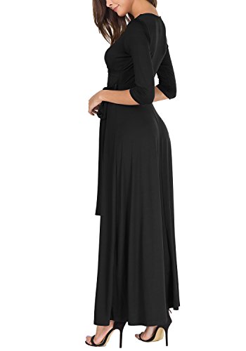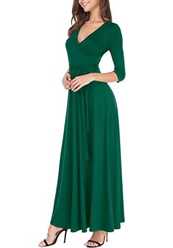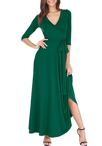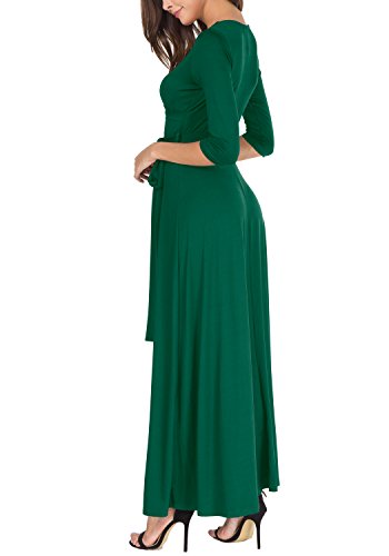 Womens 3/4 Sleeve Draped Slimming Belt Swing Casual Picnic Maxi Dress Green S