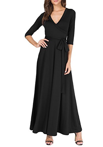 Levaca Womens V Neck Wasit Belt Slim Fit Swing Work Wear Wrap Dress Black M