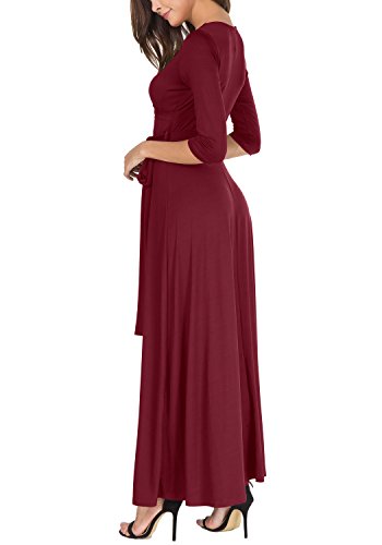 Womens Fall Vintage 3/4 Sleeve V Neck Loose Swing A Line Maxi Tea Dress Wine M
