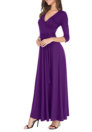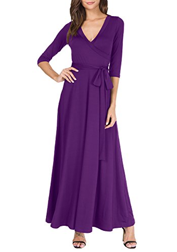 Womens Fall Solid V Neck Waist Belt Slim Fit Swing Cocktail Wrap Dress Purple L