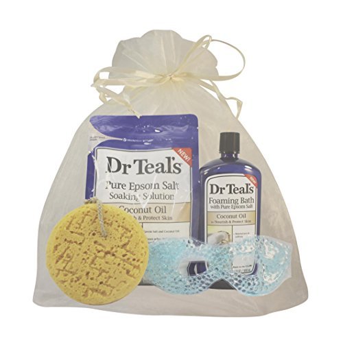 -. Title : Dr Teal's 4 Piece Coconut Oil Bath Set Featuring Pure Epsom Salt Soaking Solution, Pure Epsom Salt Foaming Bath, Natural Body Sponge, and Gel Bead Eye Mask