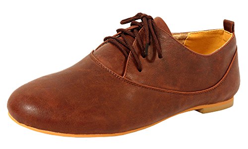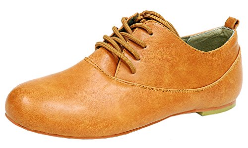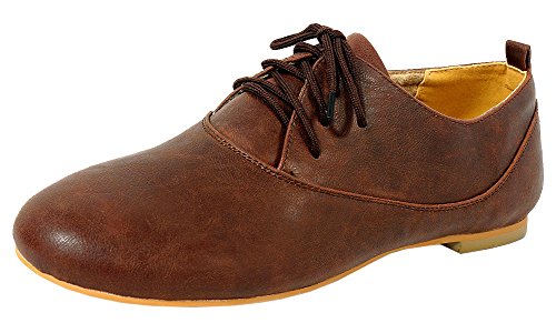 Spicy Women's F701 Lace-Up Closed Toe Brogue Oxford Wingtip Flat