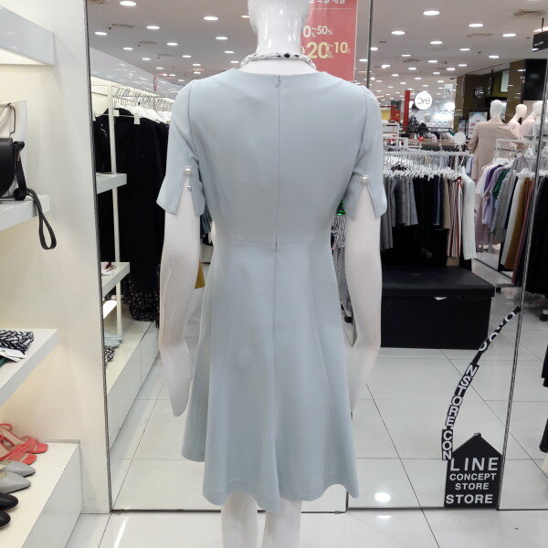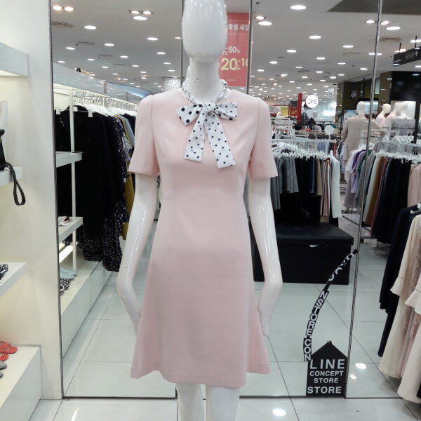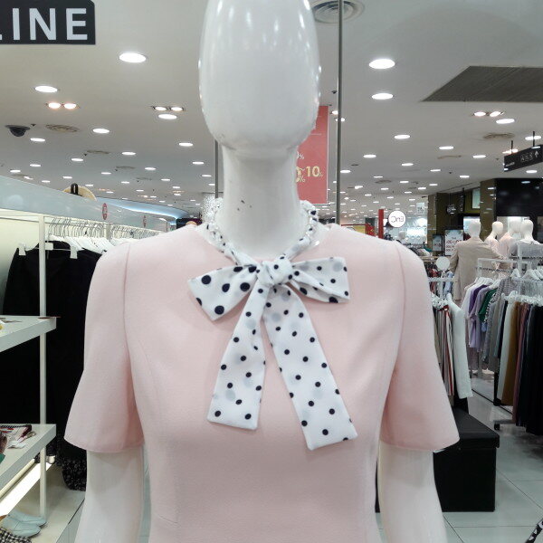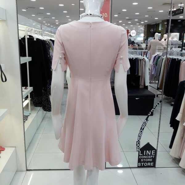 18년 여름 신상 가격인하된 도트무늬의 목걸이와 셋트인 러블리한 원피스입니다 소매 진주장식이 포인트로 단아한 느낌의 여성스러운 스타일입니다 하객룩 모임룩으로 추천합니다