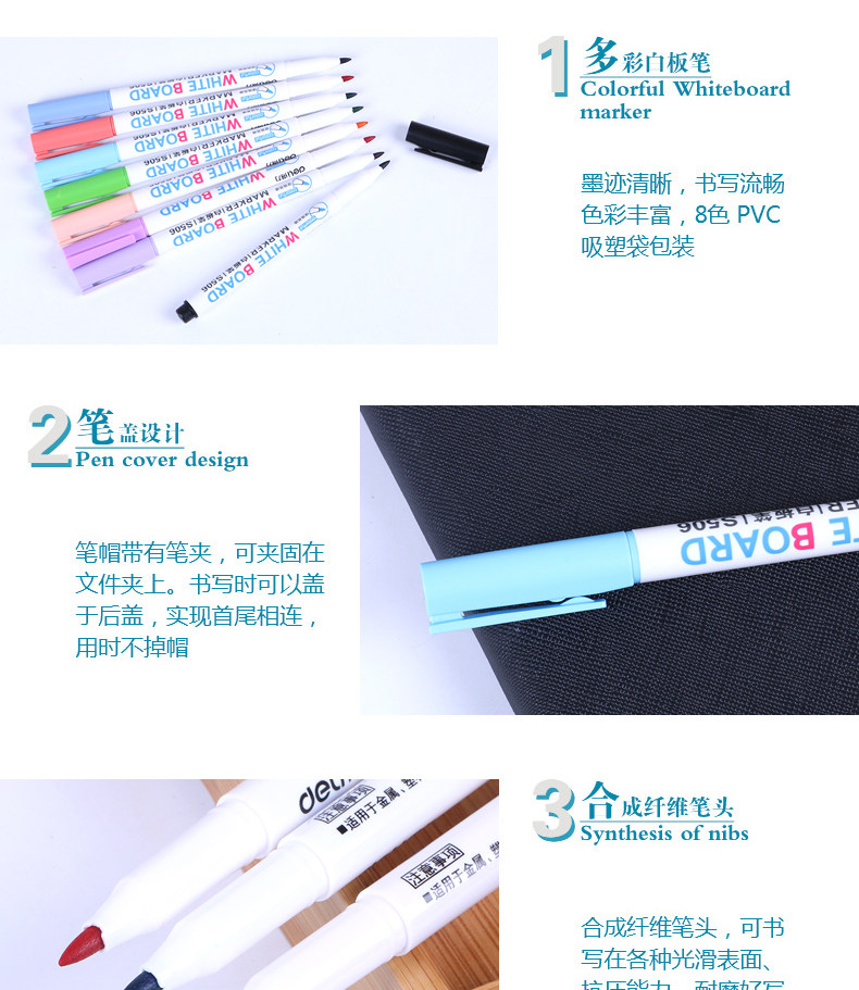 办公用品S504彩色白板笔8色/板可擦水性白板书写笔