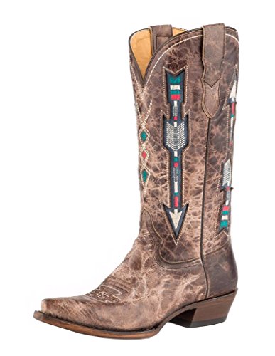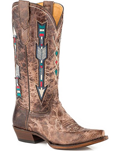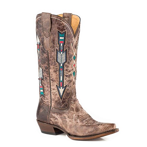 Studio : Roper Publisher : Roper Binding : Apparel Product Description The women’s arrows western boot by Roper is handcrafted to perfection with its underlay multi-color embroidered arrow design and burnish brown leather on the vamp and 13 inch shaft. It has all leather lining and a leather walking heel with cushioned insoles that make walking in these super comfortable. 0