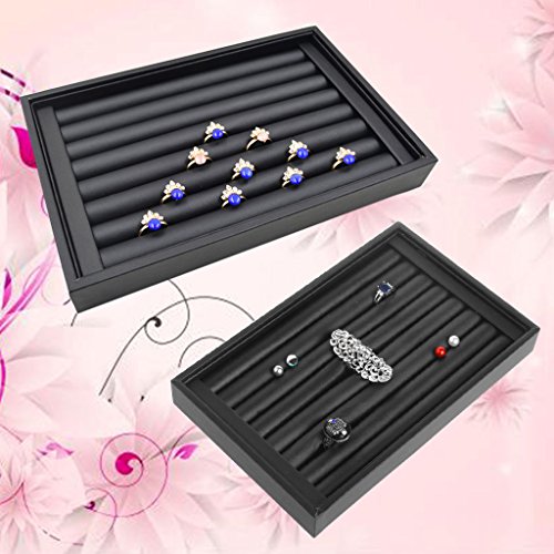 -. Title : Bettal Jewelry Rings Display Show Case Organizer Tray Box, PU Leather Black
