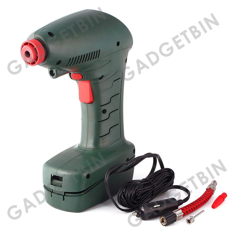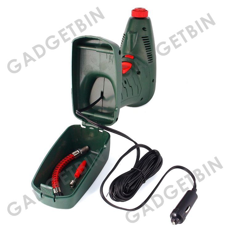 Don't let a flat tire slow you down! Air Dragon portable air compressor works with your car's 12-volt outlet to get you back on the road again. Simply plug in the adapter, attach the flexible hose to the tire and pull the trigger for turbo-powered air that inflates in no time.