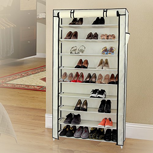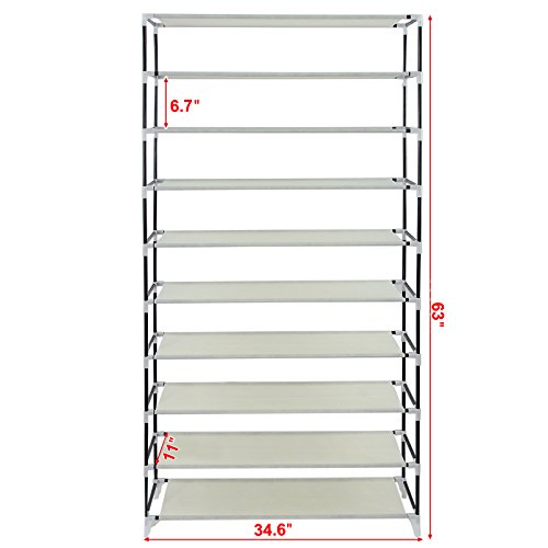 Features: - The 10 roomy, nonslip shelves can hold dress shoes, gym shoes, boots and more. - External shoe pockets on the sides of the unit, convenient for storing shoe brush, keys and other staffs. - The special fabric of interlayer has the function of waterproof, easy to wash. - The shoe rack is lightweight and easy to move.
