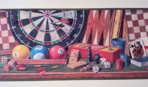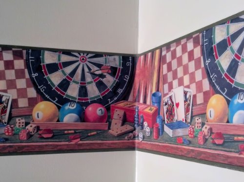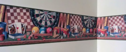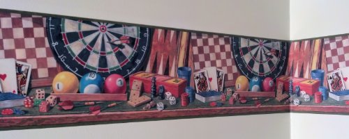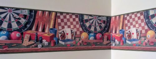 -. Title : Wallpaper Border Game Room Pool, Darts, Cards, Poker and Dice