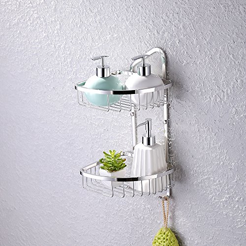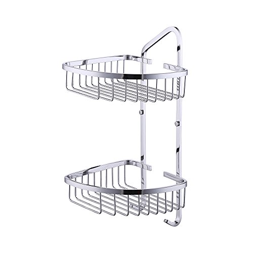 KES A2124 Bathroom 2-Tier Corner Shelf Basket with Towel Hook Stainless Steel Wall-Mounted, Polished