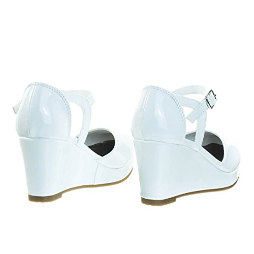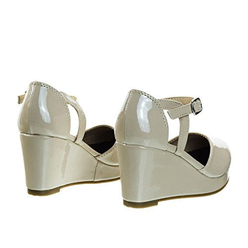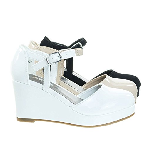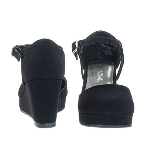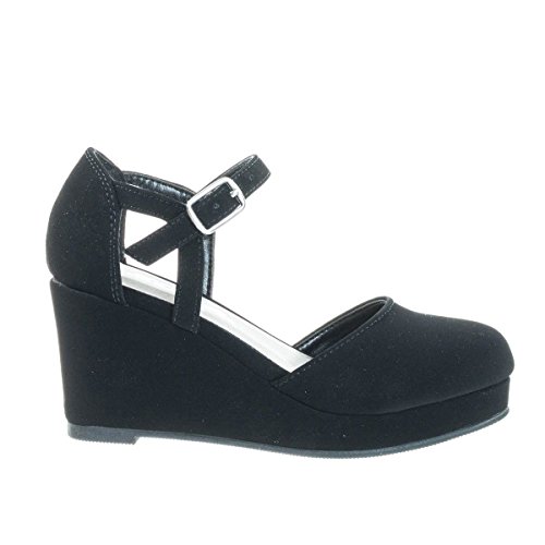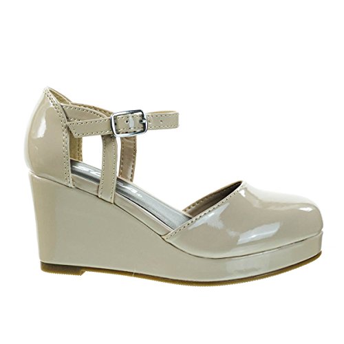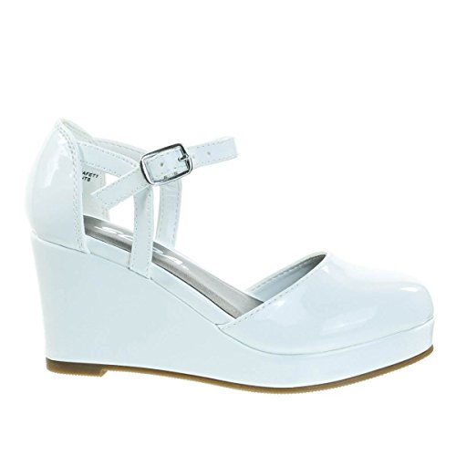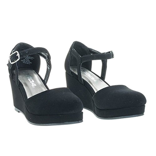 Binding : Apparel Product Description About This Shoes :These dress pump are perfect for your little girl who needs a summer dress pump and still keep their little feet cool. These wedges features a closed round toe, open shank, closed heel counter, ankle buckle closure, small platform and wedge. Brand - Soda Colors Available: Black Nubuck, Dark Beige Patent, White Patent Occasion: Formal Shoe Type: Dress Shoes Shoe Style: Dress Shoes Inner Lining: synthetic Heel Height In Inches - 2.5 Heel Style - Wedge Toe Style - round-toe Platform Height In Inches - 0.75 Shaft Height In Inches - n/a Circumference Opening - n/a Strap Type - strapless Sole - manmade All Man Made Material unless otherwise stated. Computer/Phone/Table monitors might show color differently because of its quality or calibration, we suggest you look at the photo in at least 3 monitors if you need exact color match of your shoes. 0