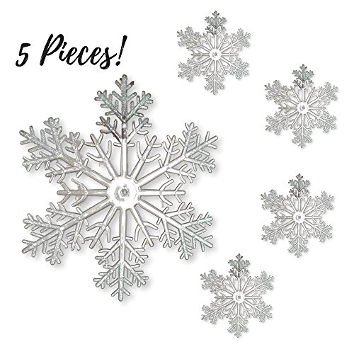 - CHRISTMAS ORNAMENTS. This set of 5 large 12" snowflake ornaments are a clear acrylic finish with white sparkle, glittered tips. These are sure to highlight your holiday decorating display.