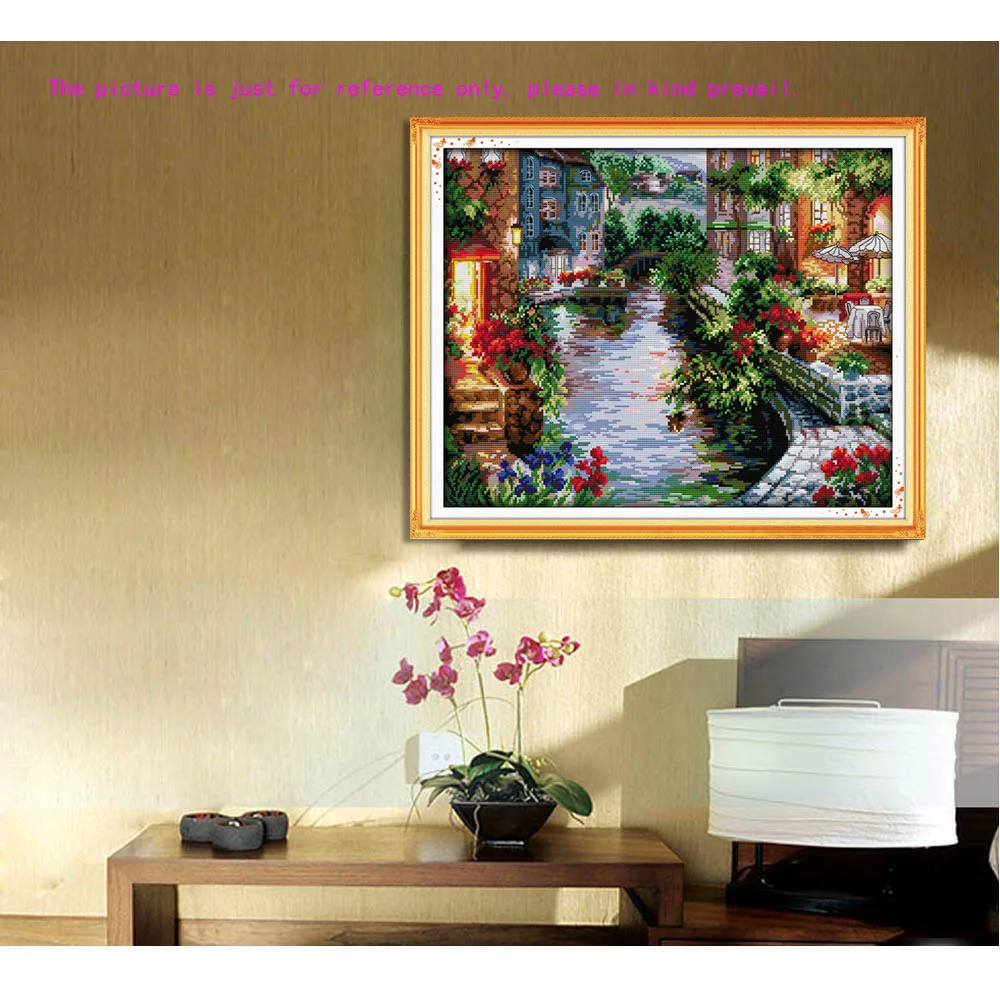Home Decoration Needlework Counted Cross Stitch Set Embroidery Cross Kit 14CT Lakeside Houses Pattern Cross-Stitching 50 * 41cm