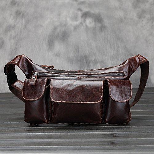 -. Feature : 100 % TOP Genuine Leather. Oversized / Dimensions: 29×16×3CM(11.4×6.3×1.1"Inch) (Very Large capacity, Can hold your small tools, iphone, wallet, credit card, cigarette, Keys, etc) / Recommend to use as:Waist bag Sling bag, Daypack, for Outdoor Cycling Hiking use. Stylish and coolRecommend to use as:Sling bag, Daypack, Shoulder bag. Stylish and cool / Weight:450G / Warranty: Our Promise-One year Warranty-Exchange, return, whatever it takes. repair free Lifetime!