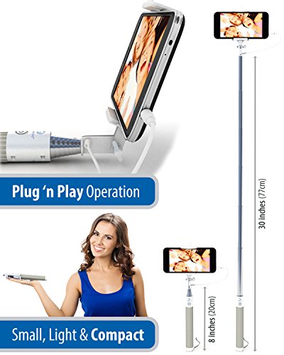 Selfie Stick, Easy Plug 'n Play Cable Operation - Advanced Monopod For All iPhones (iOS 5.0+), Samsung Galaxy, Note, Android Phones (4.2+) - Takes HD Photos, Video, Operates Flash