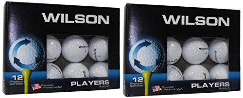 Wilson Players Mix recycled golf balls in excellent condition. A mix of the best selling models. Double dozen 24 ball pack. Our recycled golf balls have been restored without altering the manufacturer's original specifications and will play like new. Recycled means savings +Performance is not compromised +Quality name-brand golf balls for less +Each ball is washed, cleaned and inspected. Get recycled golf balls for less and spend your money doing what you love - playing golf.