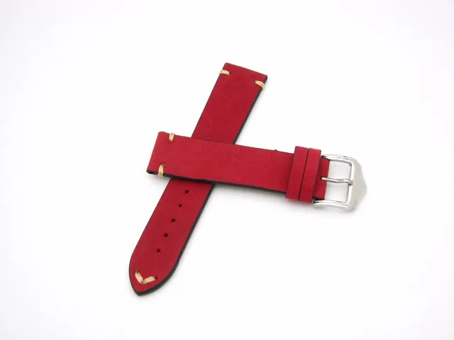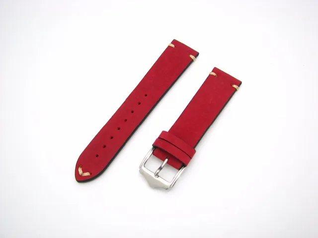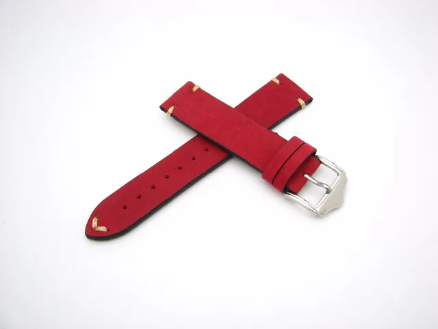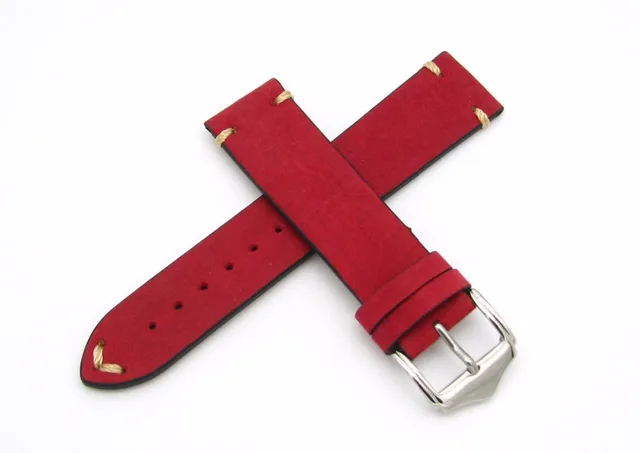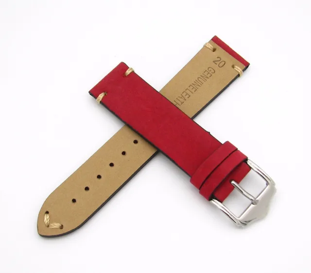 | [해외] 20 22 미리메터 뜨거운 판매 새로운 여성 정품 소 가죽 스웨이드 가죽 수제 스티치 레드 시계 밴드 스트랩 벨트 실버 광택 핀 버클 |