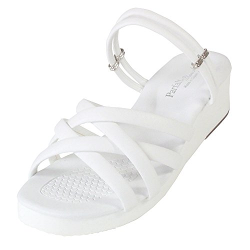 -. Feature : 1本1本を交互に編み込むことでスタイリッシュかつ痛くならないデザインに。クロスタイプの仕上がりで前滑りしにくく、さり気ない中にも女性らしい印象に足元を演出します。 / 編み込み部分のストラップベルトが柔らかく広く作られていますので、足に食い込むこともなく快適。単純にベルトを重ねて接着するのではなく交互に編み込むことで耐久性が増し、軽量設計で長時間履いても足が疲れず痛くならないようになっています。 / クッション中敷きで足あたりが快適!履いてみるとよくわかる、クッション感が心地よい中敷きを使用。 / つま先部分には凹凸加工を入れることで前滑り防止加工をプラス。サンダルが滑ってずれないように加工を施すことにより快適な履き心地が続くように配慮。 / バッグベルトは留め具をずらして2WAYに。日本のサンダル職人が手掛けた日本製サンダル。従来商品は留め具に不安要素が多いですが、日本製の部品を使い強度を付けています。