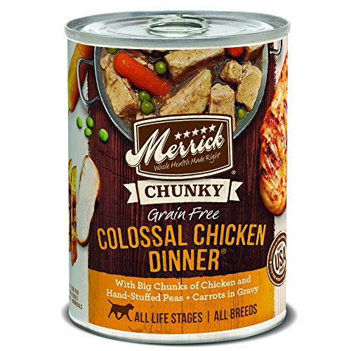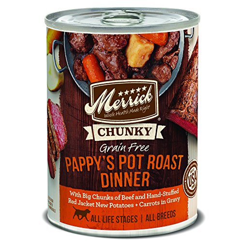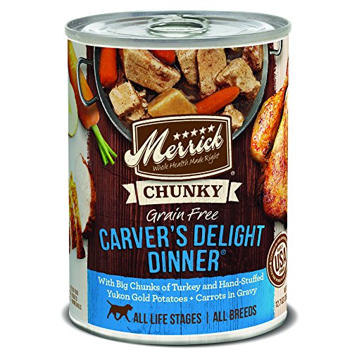 Merrick Chunky Wet Dog Food recipes are made with big chunks of meat or poultry, hand-stuffed real vegetables like carrots, potatoes and hearty gravy. All Merrick Chunky recipes are grain-free, feature deboned meat or poultry as the first ingredient, and are cooked in the USA in Merrick’s own kitchen with no ingredients from China.Feature