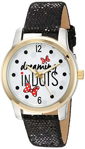 Disney Minnie Mouse Women's Two Tone Alloy Watch, Black Sequins Strap, W002789