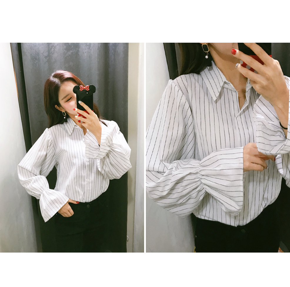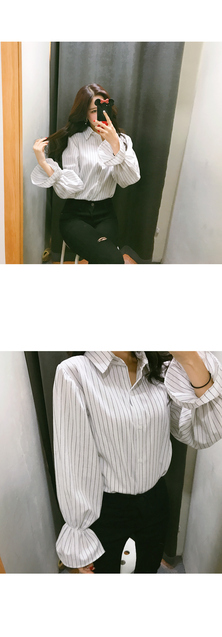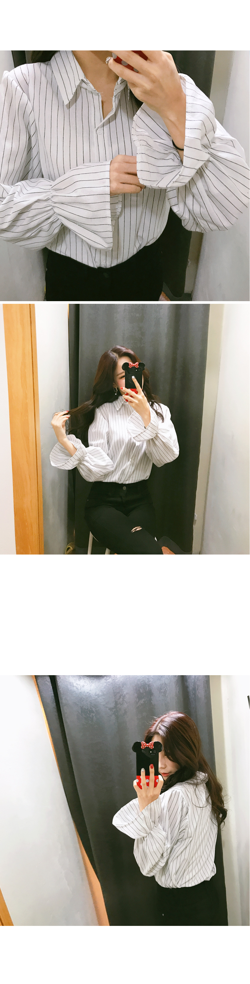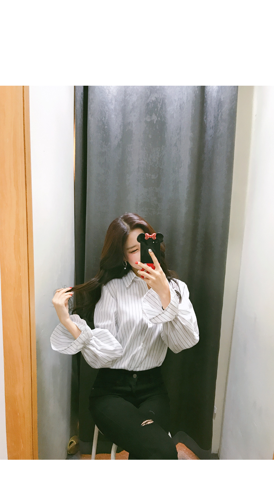 벌룬스타일의 소매라인이 여성스러운 블라우스입니다