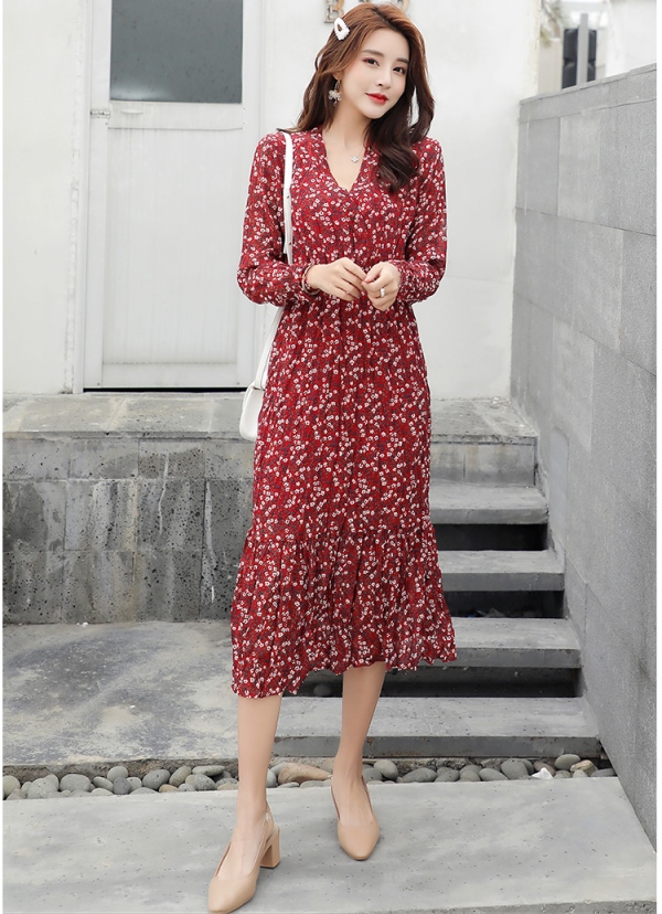 Vネック★ちょっと長めのミモレ丈で大人っぽく★