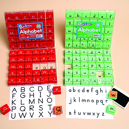 Large 1-1/2 inch upper & Lowercase rubber stampers, with Easy-To-Grip plastic handles, and comes in a labeled and sectioned see through storage case. Includes 8 Punctuation stamps, as well as the entire Alphabet in uppercase and Lowercase letters. This is a great Beginner stamp set for any teacher, and will keep your students entertained and engaged while Learning the Alphabet and improving their literacy skills.Feature