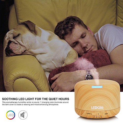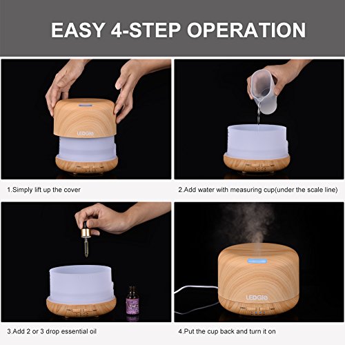 Ledgle Essential Oil Diffuser 400ml Wood Grain Ultrasonic Aroma Diffuser Mist Air Humidifier with 7 Color Changing LED Lights/ Auto Shut Off/ 4 Timer Setting