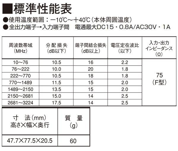 fk094igrjs亜鉛ダイカストケースを使用した分配器です サイズ 個装サイズ:5×11×3cm 重量 個装重量:105g 付属品 取付ねじ(本体取付済)、5C用F型接栓、取扱説明書 製造国 中国 亜鉛ダイカストケースを使用した分配器 亜鉛ダイカストケースを使用した分配器です ご注文後3~4営業日後の出荷となります