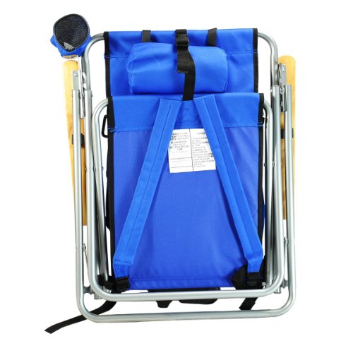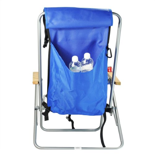 -. Binding : Misc. -. Feature : 4 Reclining Positions, Removable/padded headrest, adjustable for various heights; Carabiner Hook for Keys and other small accessory to hang ; 600x300 denier polyester fabric / Seat is 10.5 inches from ground; Seating Dimensions (inches): 17.5W x 16D ; 24H Seat Back / Weighs 8.3 lbs; Weight Capacity 240 lbs; Folded Dimensions (inches): 27.25L x 22W x 3.25H ; Frame construction: 19-millimeter powder coated steel ; Adjustable / Integrated Shoulder Straps / Open Dimensions (inches): Overall 30.5H x 22W x 24H Seat Back ; 18.5 between arms. (Wood Arm Width 1.75) / Storage pouch (13W x 15H x 5 Deep inches) at back of seat has ample space for a picnic blanket, water bottles, camera. ; WearEver Chairs are made by Rio Brands -. Label : Rio Brands -. Manufacturer : Rio Brands -. ProductGroup : Sports -. ProductTypeName : SPORTING_GOODS -. Publisher : Rio Brands -. Studio : Rio Brands -. Title : Hi-Back Deluxe Steel Backpack Chair with Storage Pouch by Rio Brands