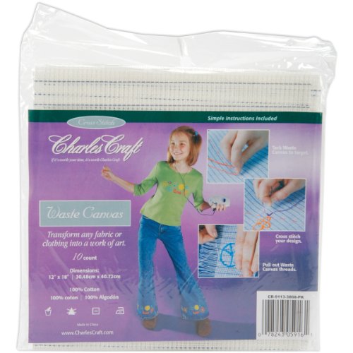 Charles craft evenweave waste canvas 10 count is the perfect way to add a design to any fabric or clothing. Simply tack the canvas to the target. Cross stitch the design then wet and pull out the waste canvas threads. Made of100-percent polyester for greater strength. The perfect way to add a design to any garment or plain woven fabric. Made in USA. Measures 12-inch length by 18-inch width sheet with a grid.