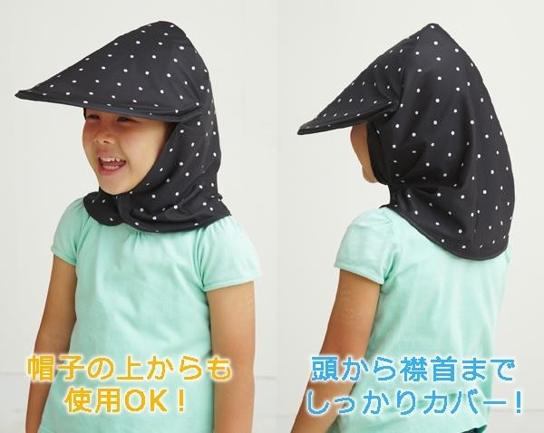 | 帽子をかぶっても襟元や首元まで完全に日よけすることができない…そんなお悩みの強い味方!!頭から首までをガードし、紫外線から守ります。帽子の上からでも使用可能。アウトドア・スポーツ観戦・園芸等にピッタリです☆ |