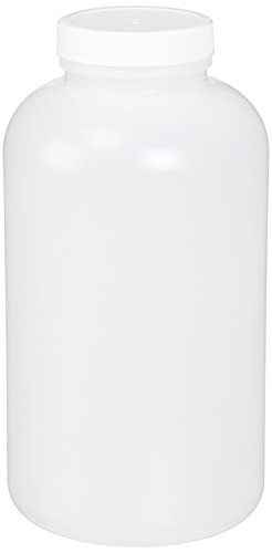 Qorpak PLC-03606 Natural HDPE Wide Mouth Round Bottle with 53-400 White Polypropylene SturdeeSeal Polyethylene Foam Lined Cap, 32 oz, Natural (Pack of 72)