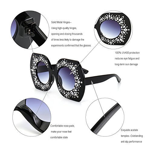 ABOUT ROYAL GIRL SUNGLASSES Pure manual grinding material and elaborate design reflect the real interpretation of ROYAL GIRL glasses excellent texture and perfect taste,show different, excellence, elegant and noble temperament. We design each of our glasses with comfort,lift,and spirituality in mind to fit your lifestyle,Which plays an important role in caring your vision and protecting your eyes from harmful rays. - Different eyewear should bring you different emotions, and match your personality and lifestyle -'The best' doesn't always mean the most expensive - everyone has their own preference! Best Customer Service Care Meet our friendly customer service team focused on providing the best shopping experience and making every customer happy.? Quality Control We care about how you feel about our product. Every piece of eyewear is given extra attention for quality and packaged with care before it leaves our warehouse.? Price Conscious We are a family owned company who believes you can wear any style at a fraction of the price without compromising quality.? Product Description: Bold and iconic,these large classic horn rimmed sunglasses feature stunning colored mirror lenses and metal rivet details. Complete with stylishly wide arms and a matte finish,this versatile style can worn anywhere from a day at the beach to outdoor parties by the pool.? Product Feature: Reduce surface reflections Durable and lightweight frame Flattering lines and aesthetically pleasing appearance This vintage square sunglasses is made of bling rhinestones Multiple mirror lenses colors are available for this style, hope they can bring you a colorful mood. 0 |