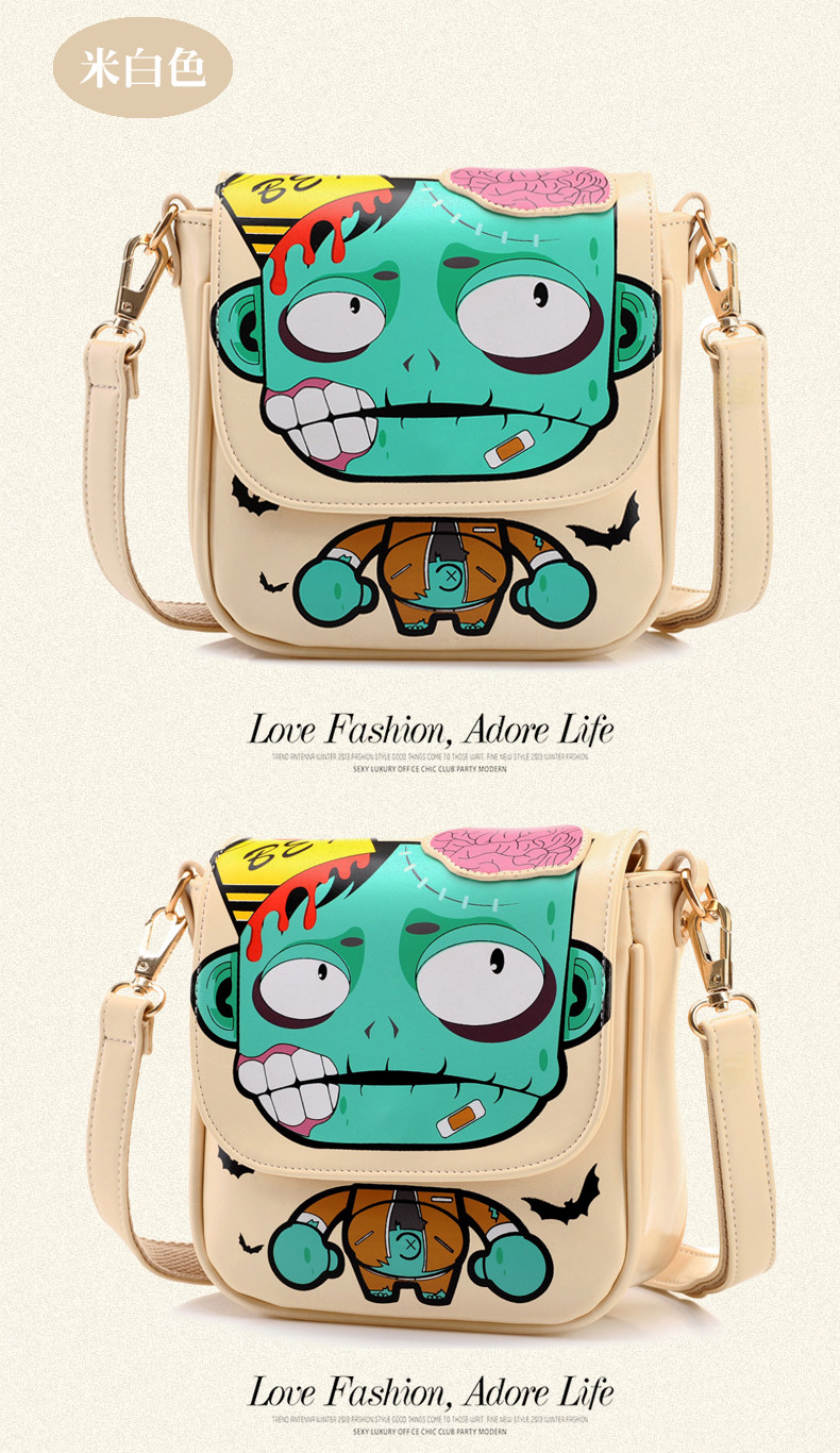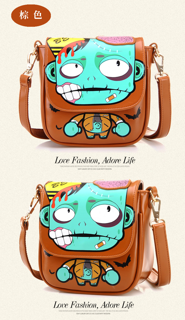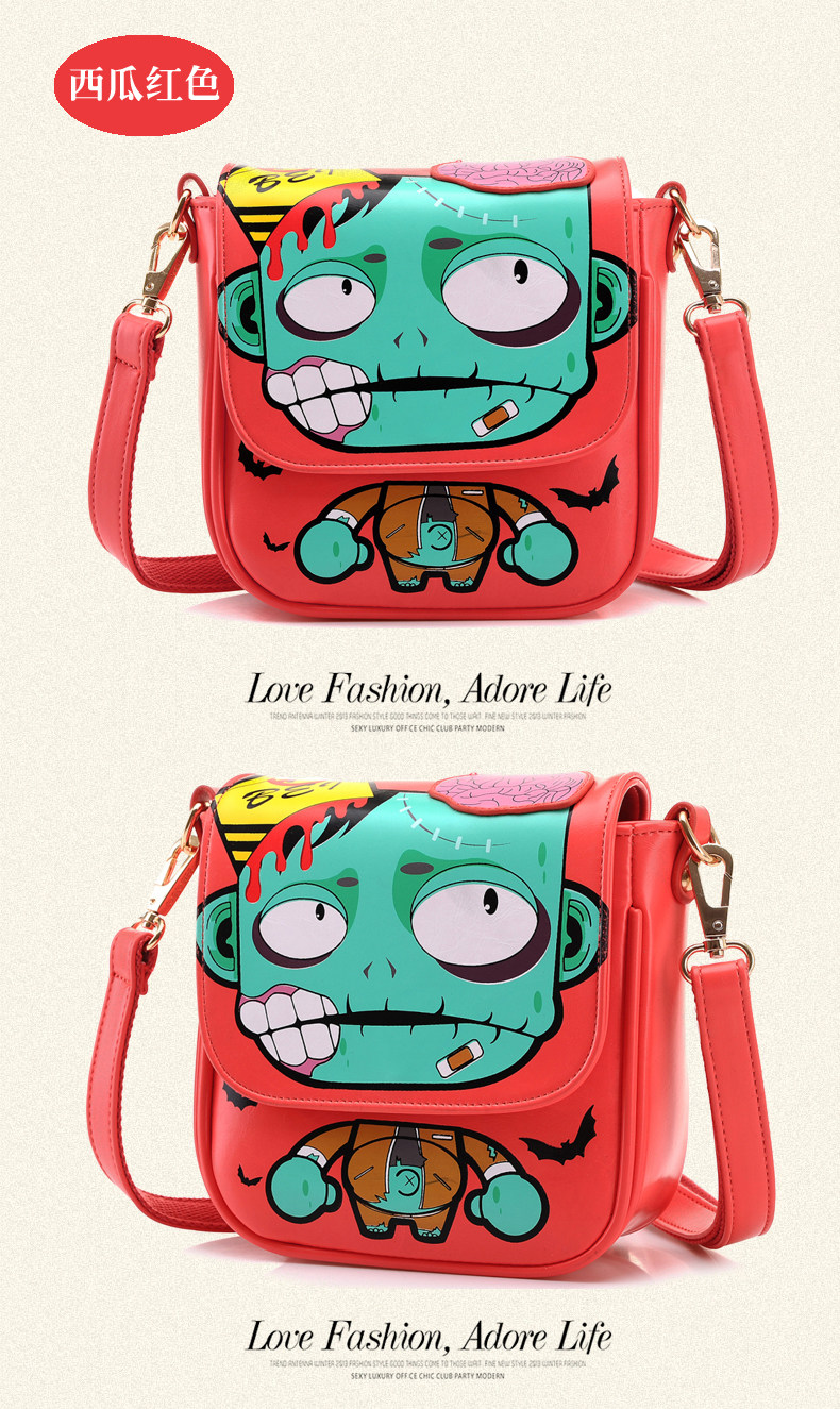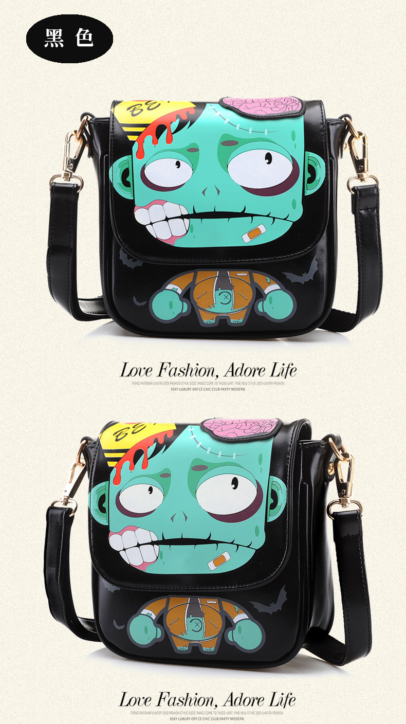 新款斜挎女包时尚卡通印花单肩斜跨小包个性僵尸包